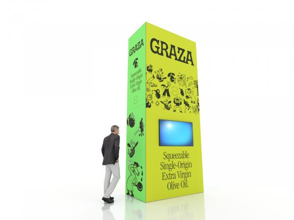 Towers are the ideal building block for creating a customized island exhibit. Start by choosing the tower size. Then add counters, workstations, lightboxes, and furniture to complete the design. For many exhibitors, flexibility is crucial. Their booth size and messaging often changes depending on the show and the audience. A tower serves as the central feature in the booth design but everything else can vary. Perfect!
