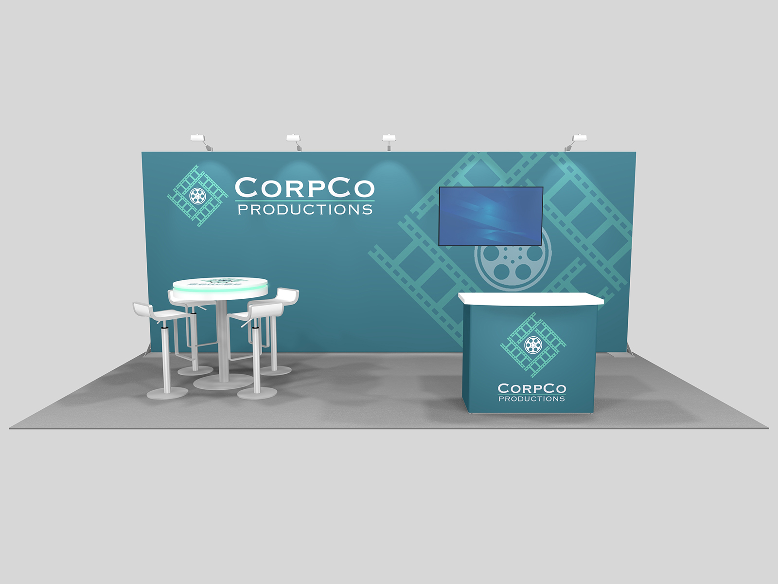 Quite often, a few custom elements added to the design can give the entire design a custom look even if it’s as simple as some colorful laminated workstations, shelves, or a reception counter. Custom laminated soffits and backlighting are also nice touches that are inexpensive and well worth the investment. As a bonus, if you re-rent the same exhibit, your second rental will most likely be less expensive, since your first rental covered the cost of those custom components.