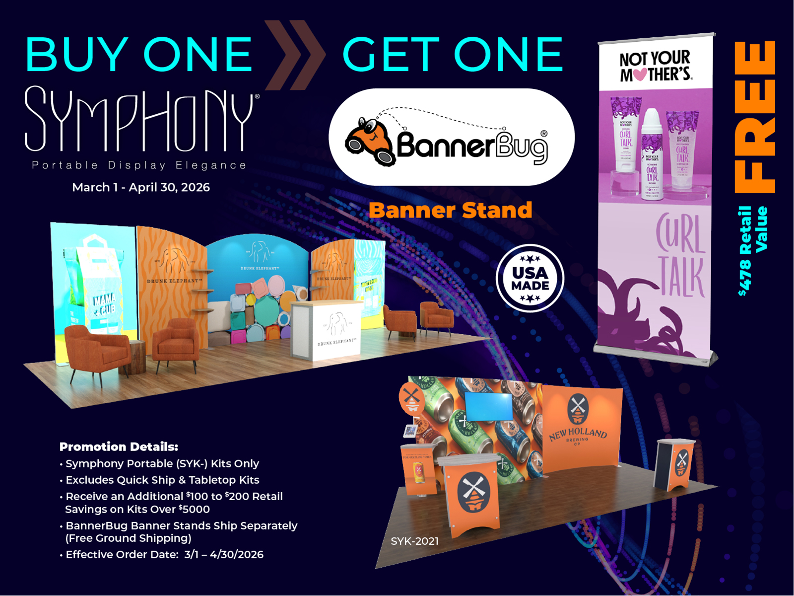 Introducing Symphony, the first portable/modular display to blend easy tool-less assembly with elegant design and clever accessories. With Symphony, there are no compromises, no tradeoffs. Simply a beautiful upscale display at a price that’s thousands less than most custom modular exhibits.